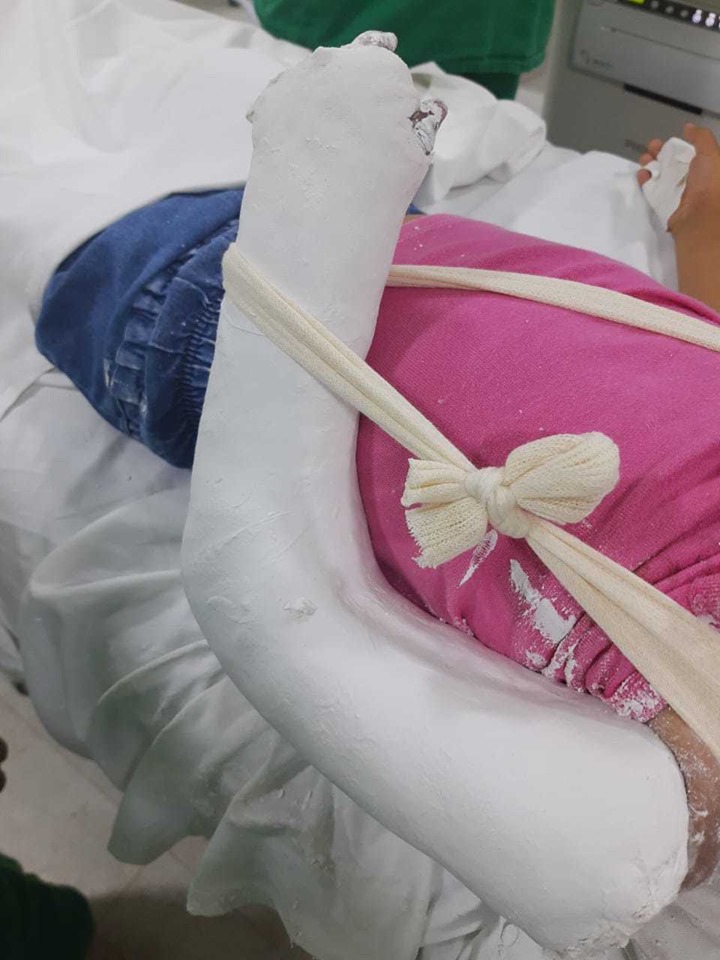 Esse nas fotos é mais um caso tratado pelo Dr. Luciano Brasil. Ele fez uma redução da fratura sob anestesia para evitar dor aos pequenos pacientes, assim como traumas.