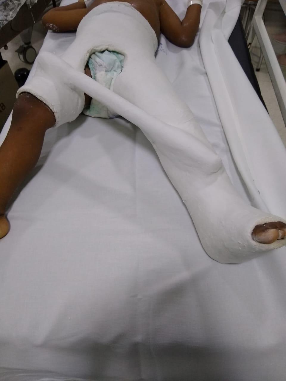 Esse é mais um caso tratado pelo Dr Luciano Brasil. Fratura de fêmur em uma criança de 3 anos. A primeira imagem mostra o osso desalinhado, a segunda depois de ser feita a redução e a terceira imagem mostra o tipo de gesso usado nesses casos