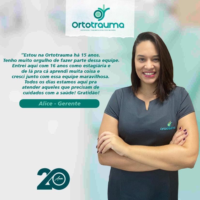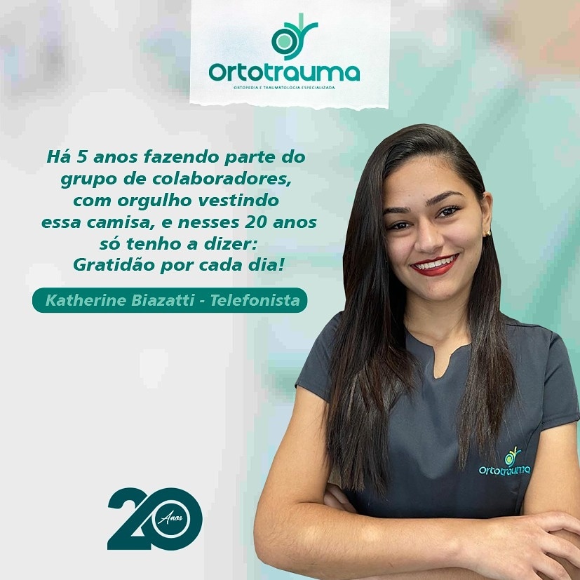 Esse é o nosso Técnico de Raio-X Ney da Costa, o famoso “Zuza”!Essa é a nossa Telefonista Lara Rezende, que faz parte da nossa família há 03 anos!Essa é Alice Avelar, iniciou sua trajetória conosco como Estagiária e hoje é nossa Gerente Administrativa!Essa é a Katherine Biazatti, que está há 03 anos fazendo parte da nossa família. Ela começou como Estagiária, foi Recepcionista e hoje é nossa Telefonista!