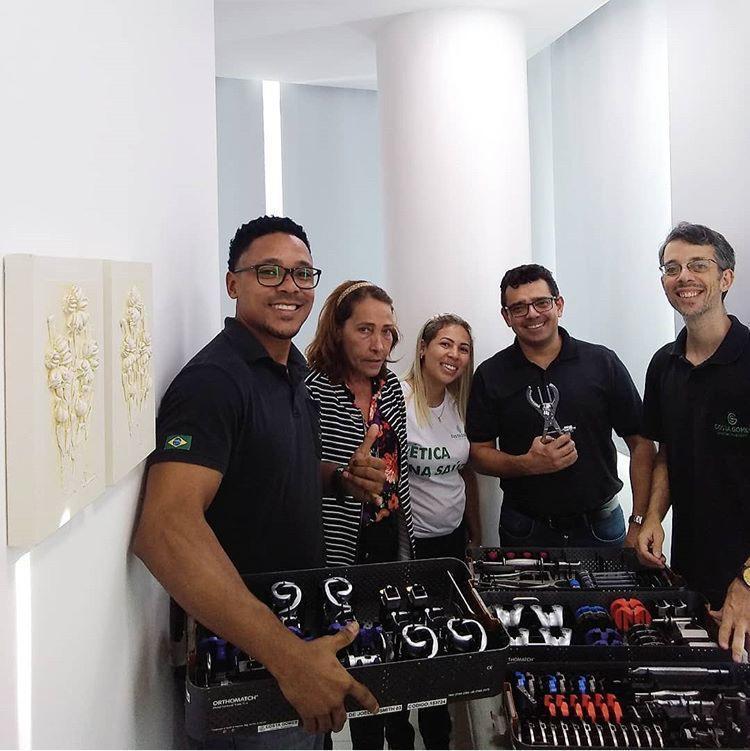 Dr. Danilo da Silva Lobo conferindo os materiais de cirurgia de prótese total de joelho em parceira com a equipe Comercial Costa Gomes.