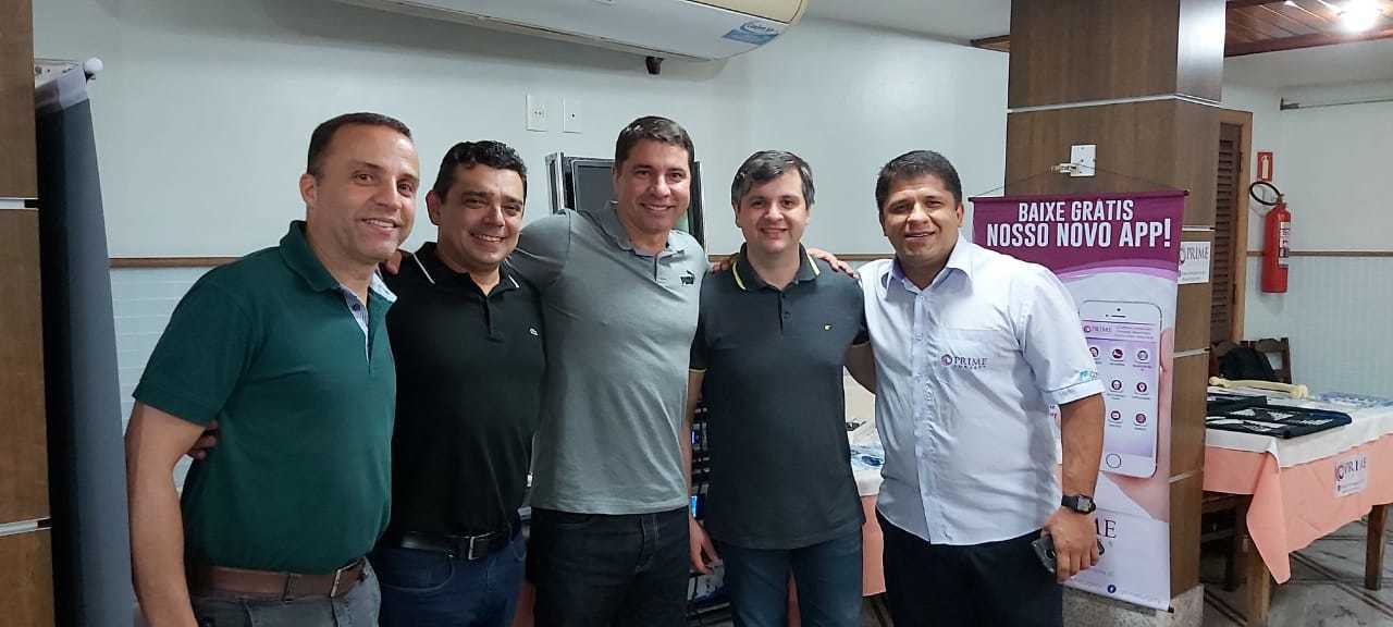 Da esquerda pra direita Dr. Érlan, Dr. Danilo, Dr. Luciano, Dr. Arthur e Matheus, representante da Prime Surgery, no workshop de apresentação de suas linhas de ortopedia, neurocirurgia, buco-maxilo e otorrino.