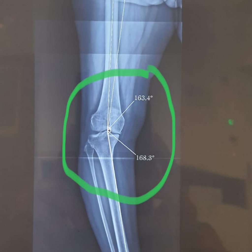 Essa paciente tinha a “perna cambota” nome popular para Deformidade em Varo além de uma artrose inicial.