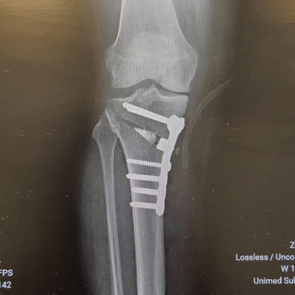 Nosso especialista em Joelho Dr Danilo Lobo @daniloslobo realizou cirurgia Osteotomia Corretiva valgizante com placa, que é a correção do eixo da perna e colocação de placa.